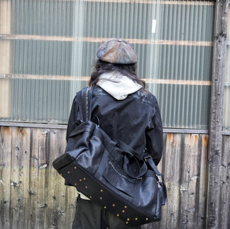 There are random brass studs on the bottom of the bag, which add a design touch and make the bag stand out when used as a backpack.